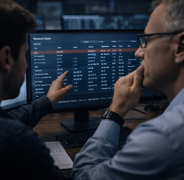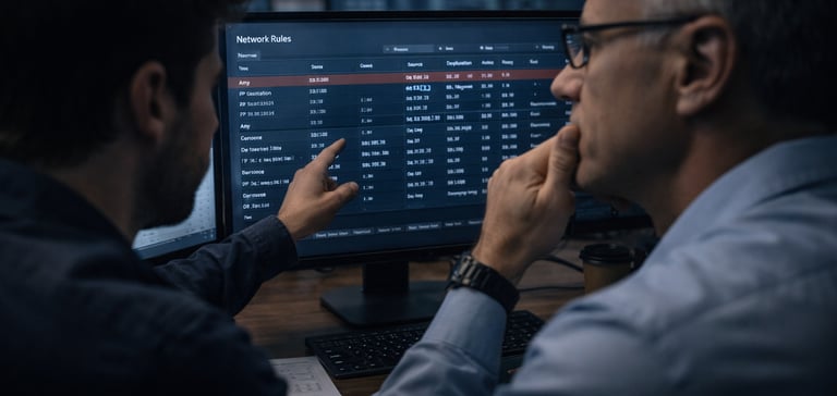 No dia da virada, nada funcionou. Servidores fora, sistemas caindo, equipe de TI desesperada tentando entender o que estava bloqueado, o que estava liberado, por que as coisas não batiam. Passaram uma noite inteira virados tentando consertar, até que desistiram e voltaram atrás, fizeram rollback. Remarcaram a migração, nova tentativa — e o mesmo desastre. Tudo de novo. Só quando fomos chamados pra ajudar é que ficou claro: ninguém tinha pensado no básico — revisar regra por regra, entender o ambiente, montar cenário paralelo, fazer teste controlado, garantir que não ia bloquear o que não podia. Faltou o quê?